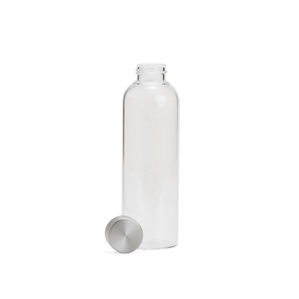 Garrafa de vidro borossilicato com capacidade de 650ml, acompanha capa de neoprene com alça para transporte. Tampa de alumínio.