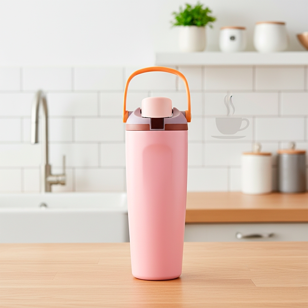 Garrafa térmica em inox com capacidade para até 850ml. Conta com estrutura de parede dupla e vedação a vácuo, ajudando a conservar a temperatura dos líquidos por mais tempo. Possui tampa rosqueável em plástico com protetor para o bocal, botão de acionamento, trava de segurança e alça de mão para transporte. Acompanha canudo para encaixe interno na tampa.