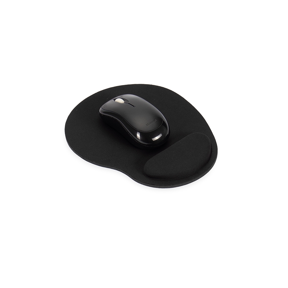 Mouse pad feito em poliéster e base em EVA. Possui design ergonômico que oferece maior conforto durante o uso graças ao seu apoio de punho com enchimento de espuma macia.
